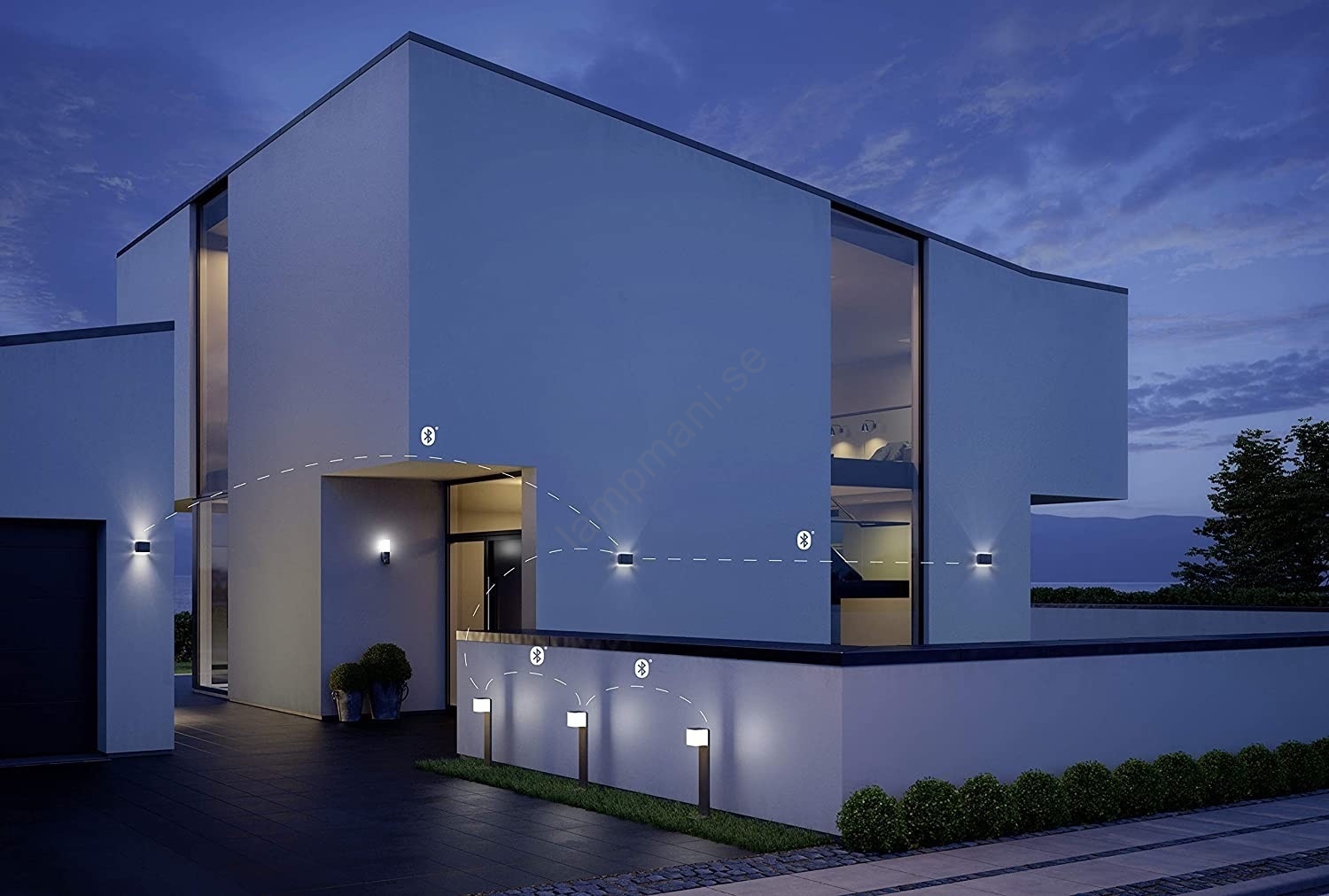 • Justbar nattbelysning som med skymningens början lyser upp dina gångvägar runt huset.