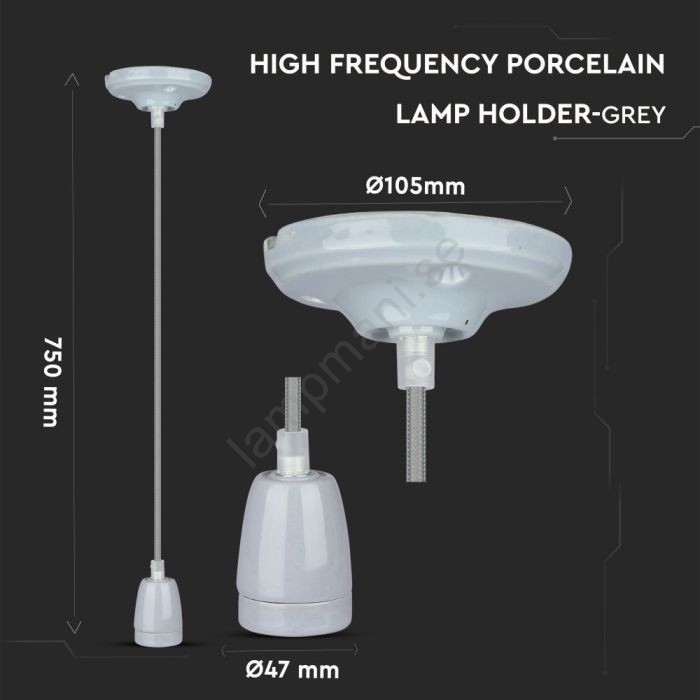 Strömkabel 1xE27/60W/230V grå/porslin | Lampmani