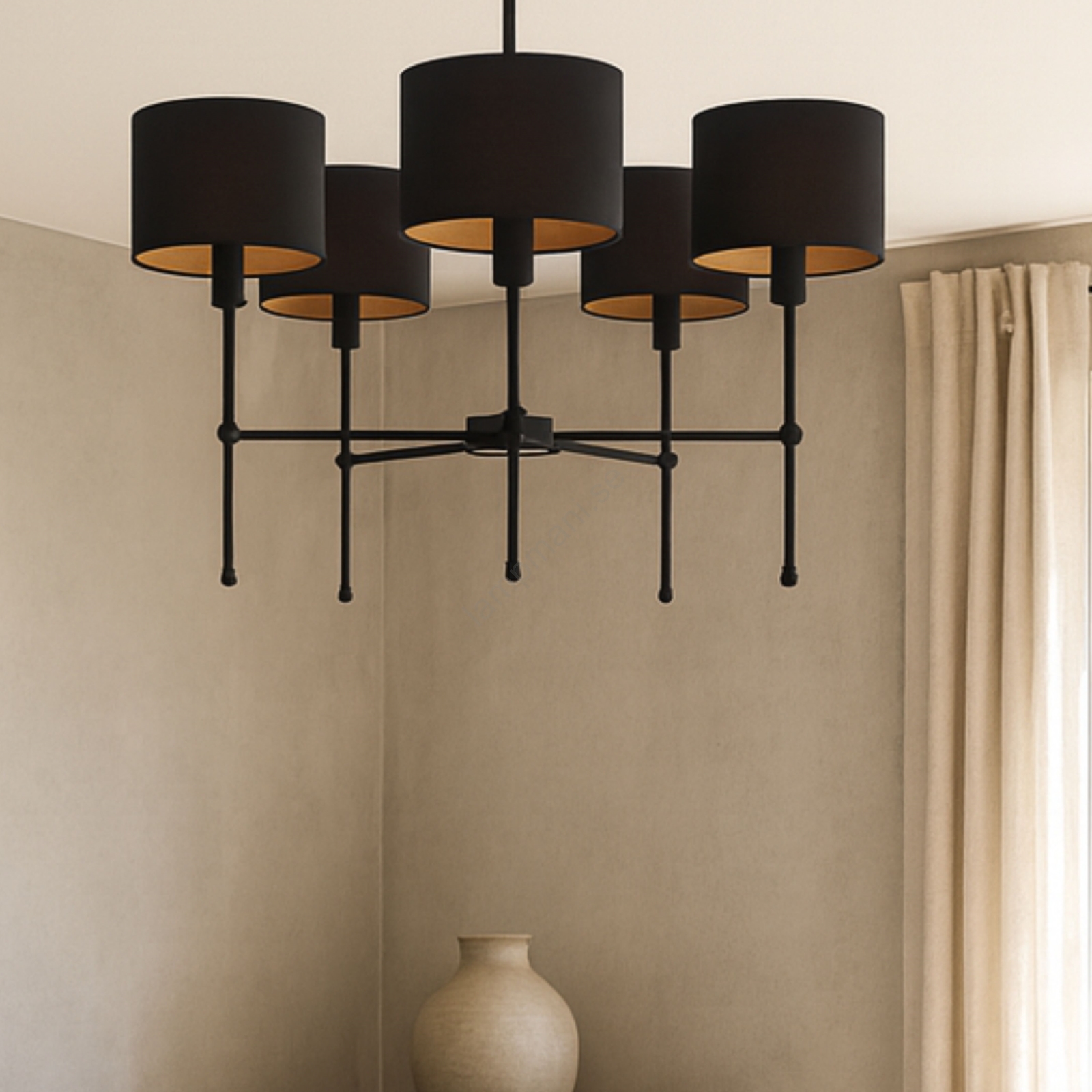 • Ljuskrona på stång MADELA 5xE14/40W/230V svart/beige