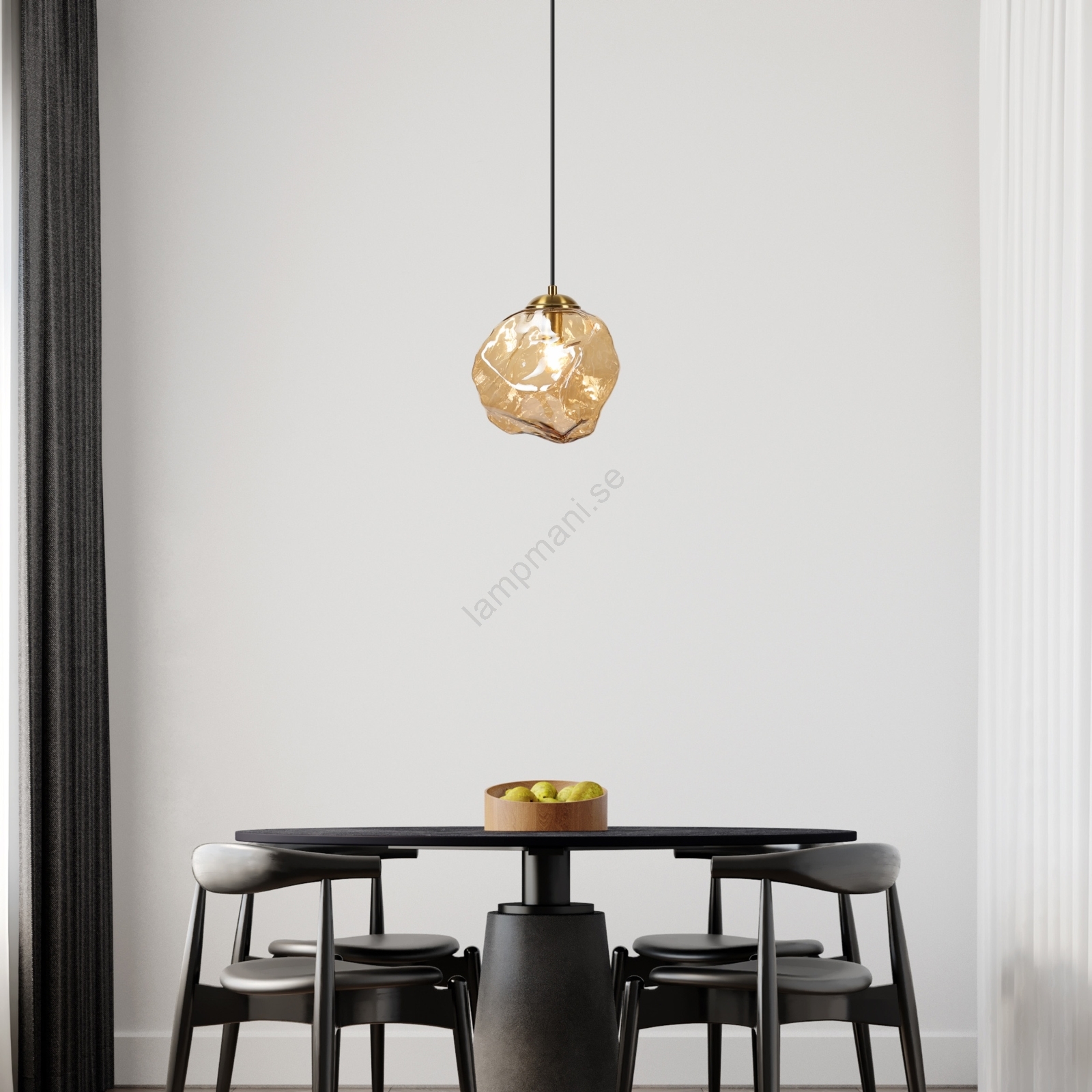 • Hänglampa med kabel CRISTAL 1xE14/15W/230V mässing/rökfärgat svart