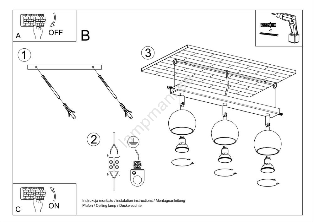 Sollux SL.0445 - Tak spotlight OCULARE 3xGU10/10W/230V | Lampmani