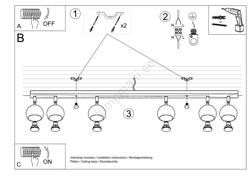 Sollux SL.0448 - Tak spotlight OCULARE 6xGU10/10W/230V | Lampmani