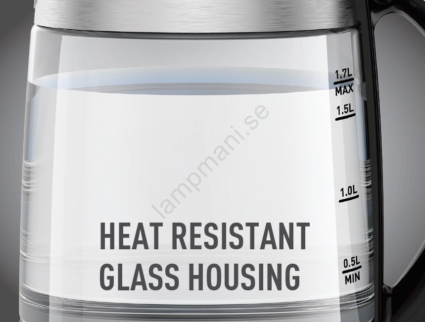 • Vattenkokare med kropp av härdat glas.