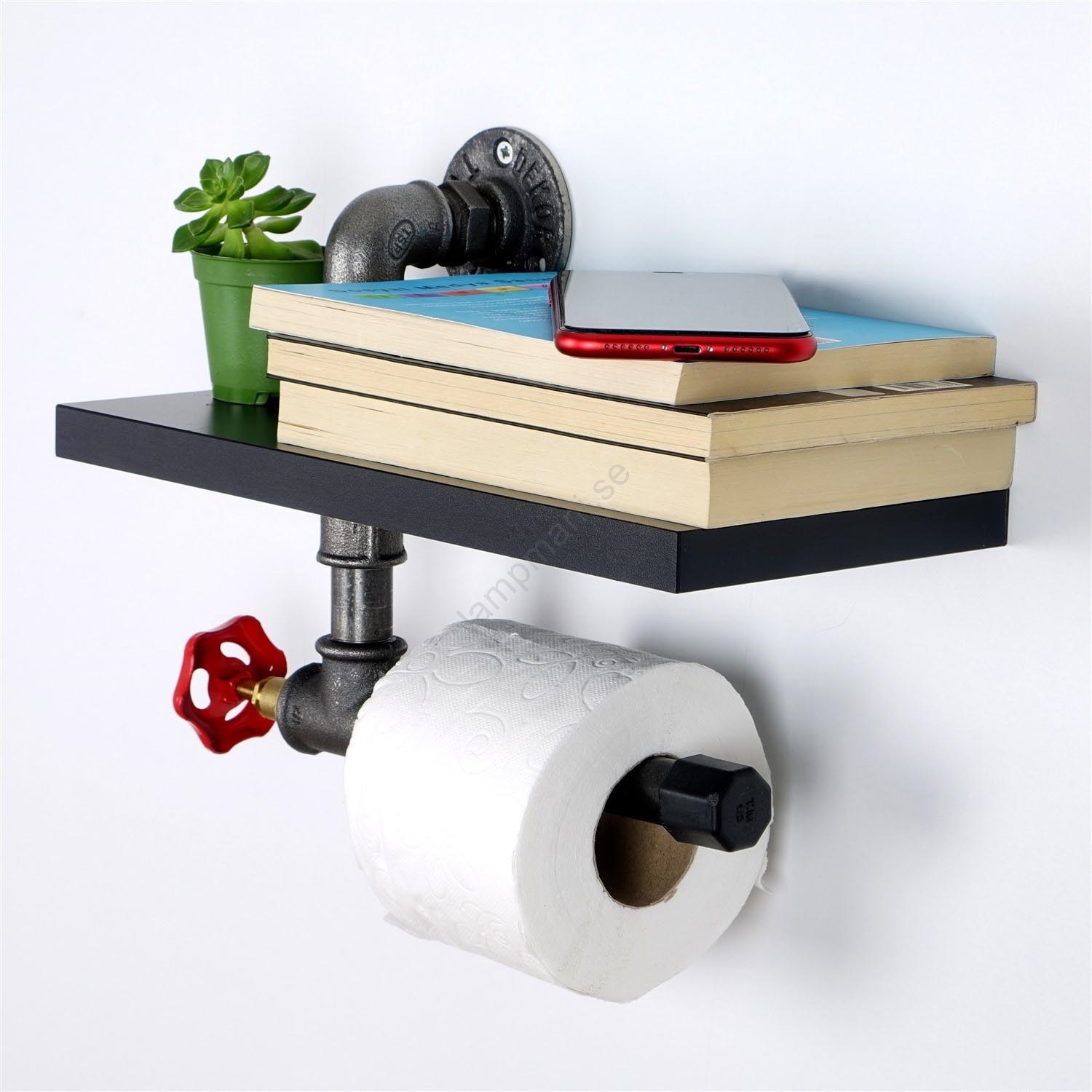 • Toalettpappershållare med hylla i industriell stil.