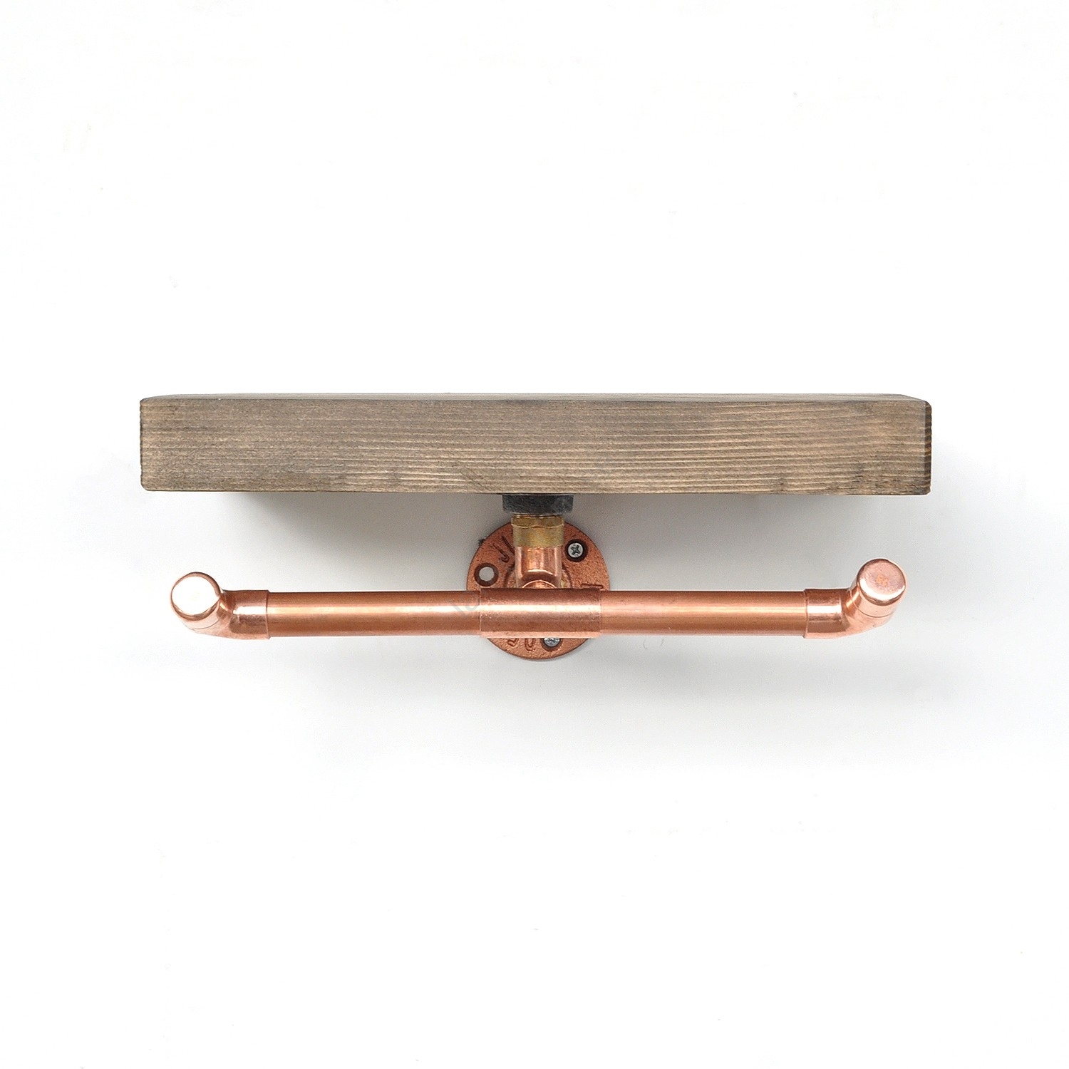 Toalettpappershållare med hylla BORU 12x30 cm gran/koppar | Lampmani