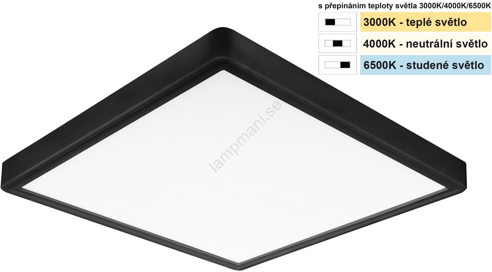 Top Light-LED taklampa REVIT LED/24W/230V 3000/4000/6500K 30x30 cm svart | Lampmani