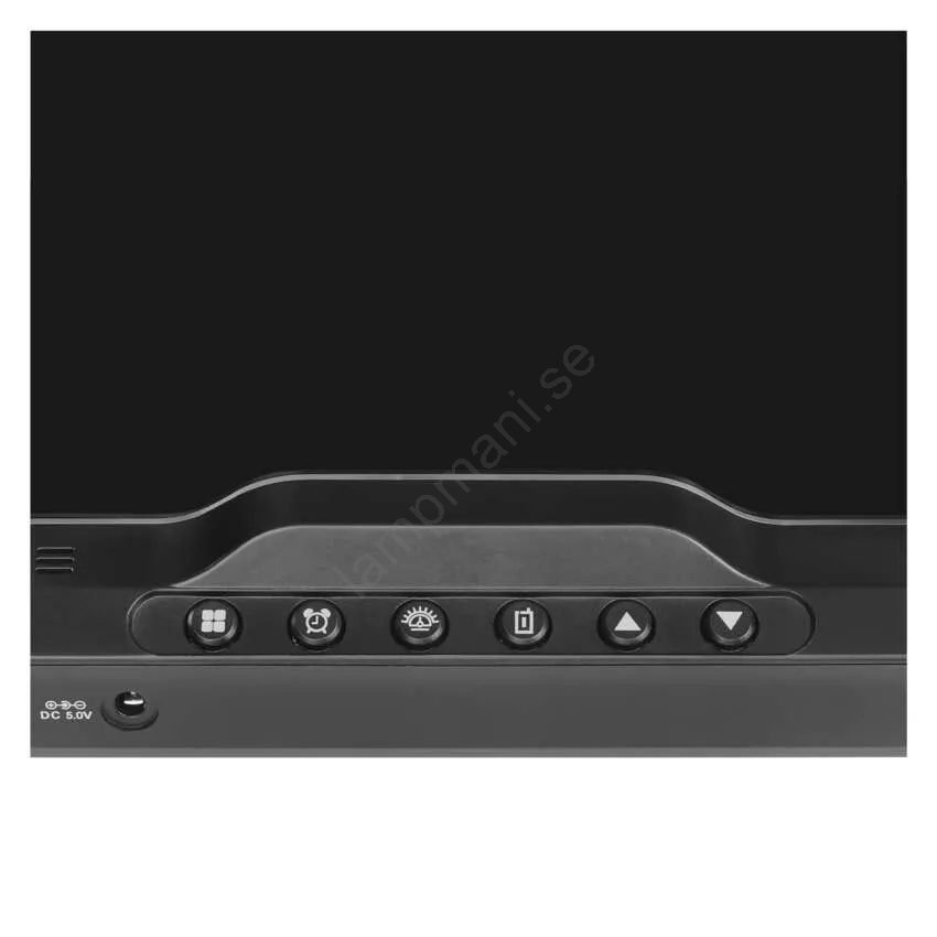 • Visar information: inomhus- och utomhustemperatur, inomhus- och utomhusfuktighet, väderprognos, min- och maxtemperatur, månfas, tid, datum och kalender.