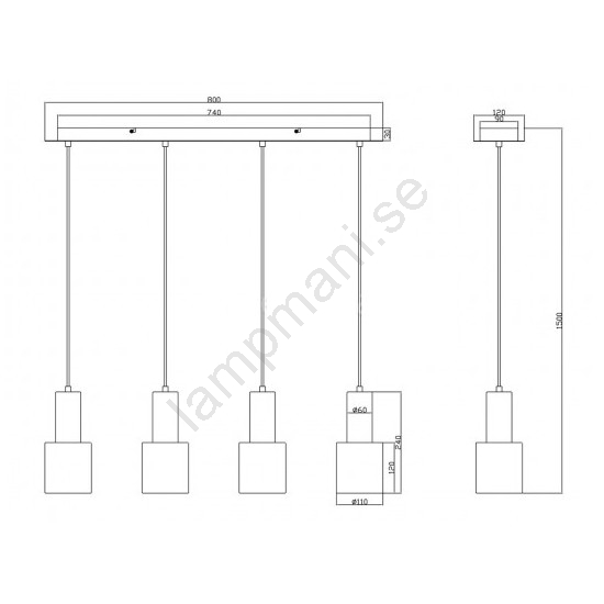 Trio - Ljuskrona med upphängningsrem WAILER 4xGU10/5W/230V grå | Lampmani