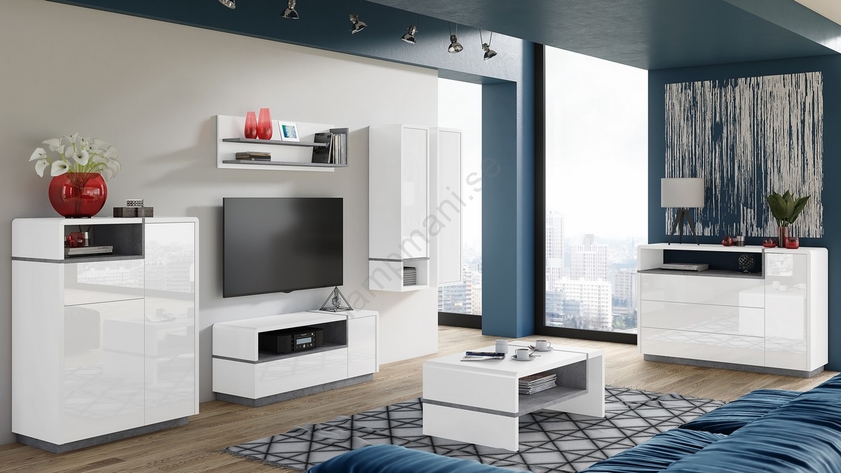 TV-bänk FRED vit/grå | Lampmani