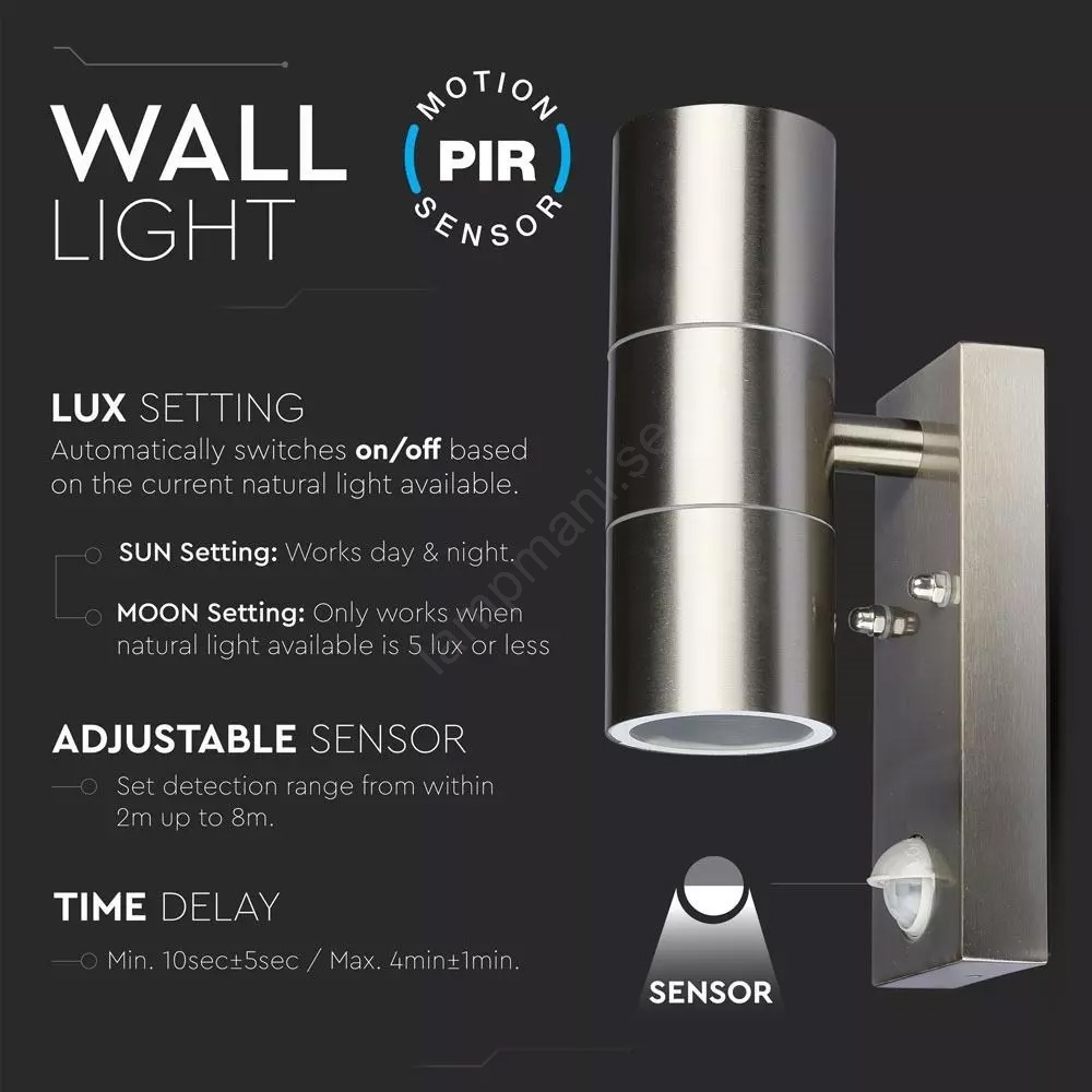 • Högkvalitigt utomhusarmatur i rostfritt stål med sensor.