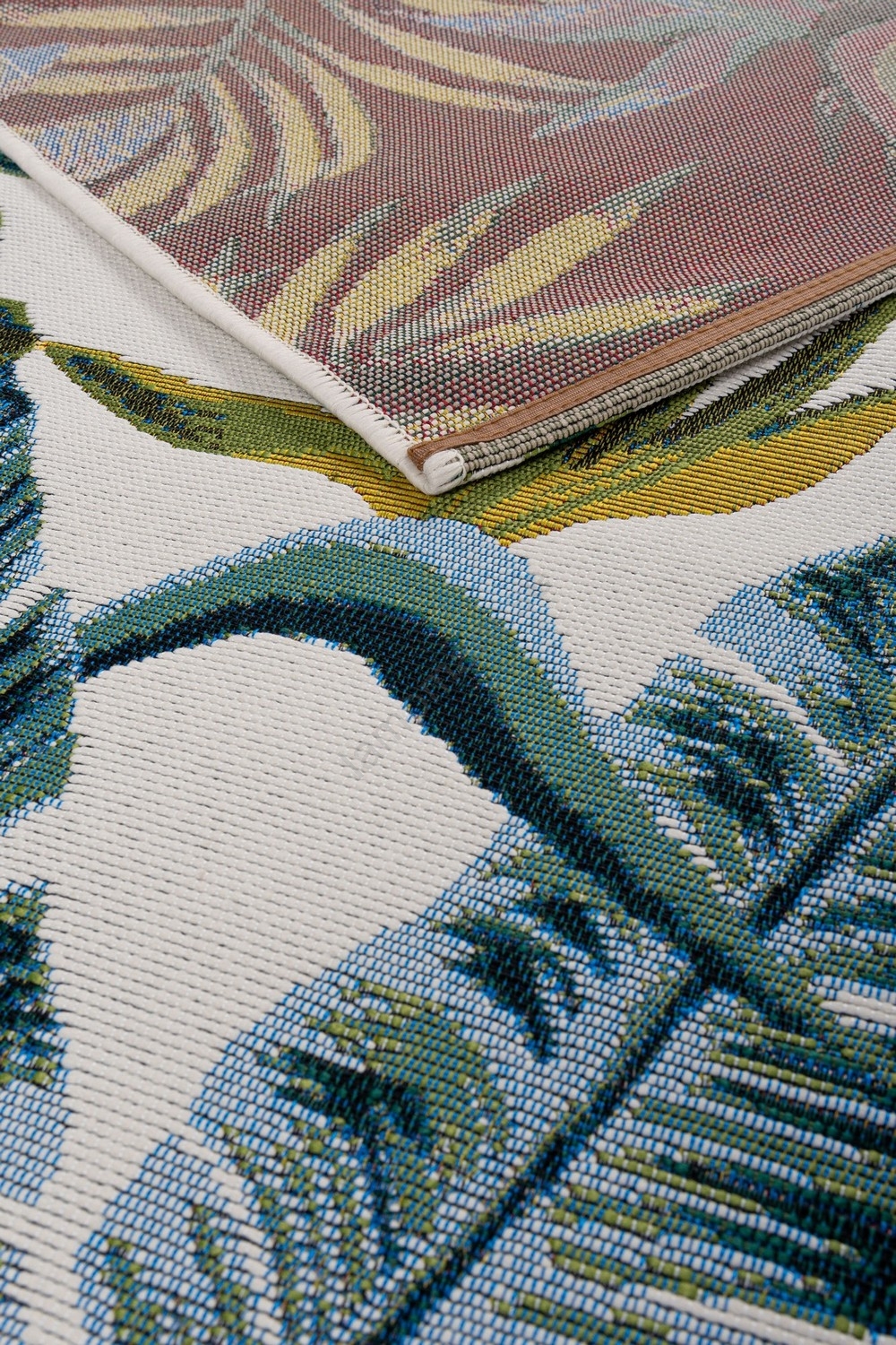 Utomhusmatta CAPPUCCINO 80x165 cm turkos/bladmönster | Lampmani