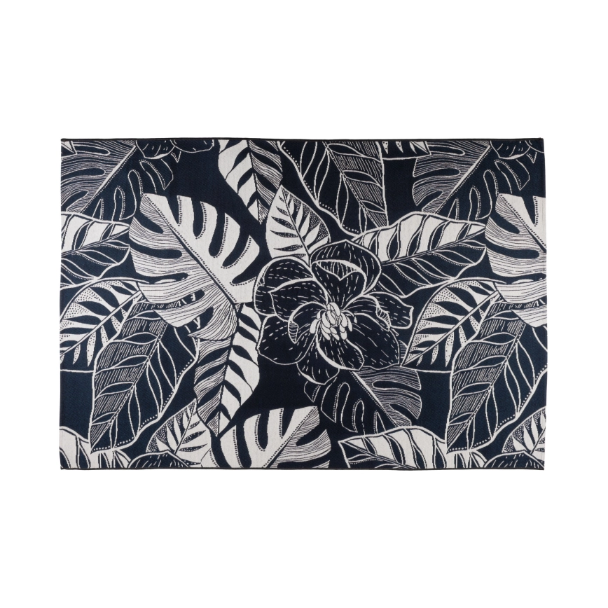 Utomhusmatta JUNGLE 160x220 cm svart/vit med lövmönster