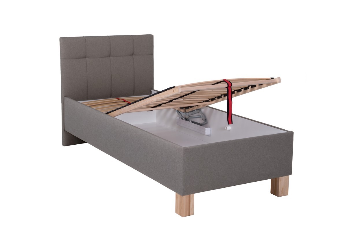 • MARIA ONE — tygklädd säng med förvaring, 90x200 cm, utan madrass, grå