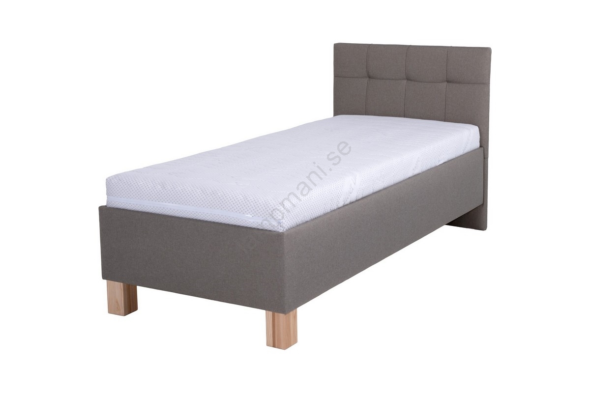 • Tygklädd säng med kvalitetsmadrass och rymlig förvaring MARIA ONE 90x200 cm, brun