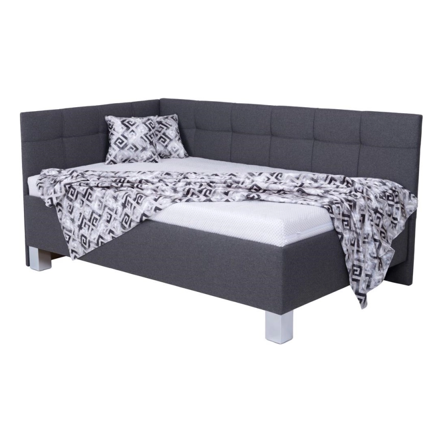 • Tygklädd säng med madrass och praktisk förvaring MARIA PETITE 120x200 cm grå