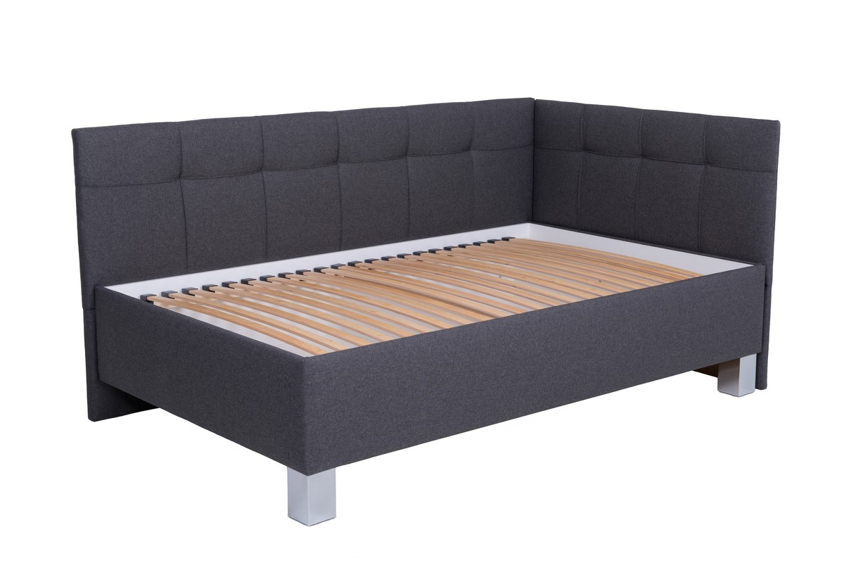 • Tygklädd säng MARIA PETITE 120x200 cm med inkluderad madrass och smart förvaringsutrymme, antracit