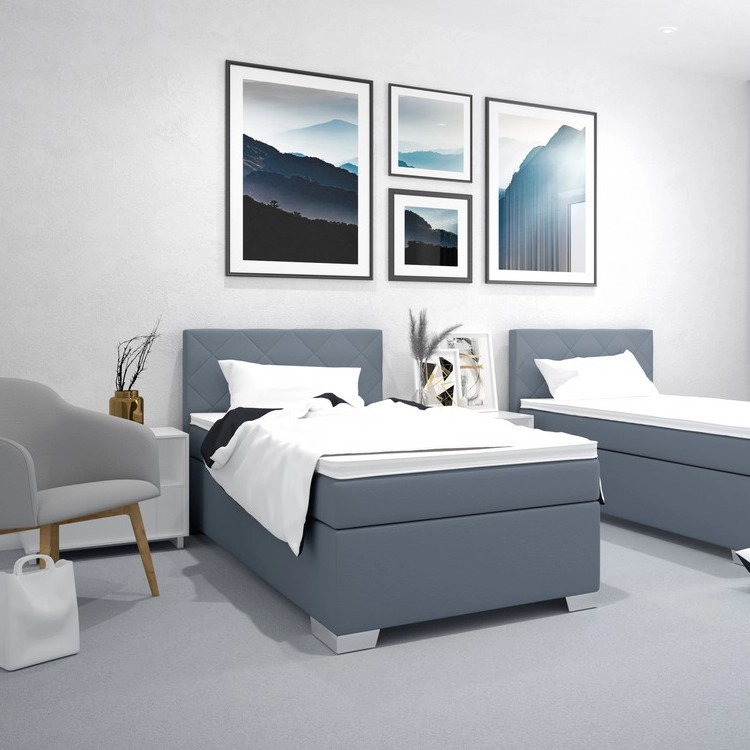 Stoppad säng med madrass IDA 90x200 cm blå | Lampmani