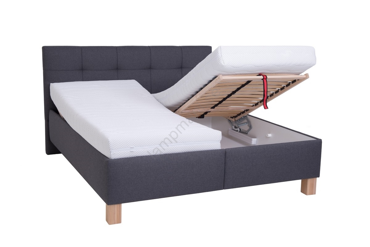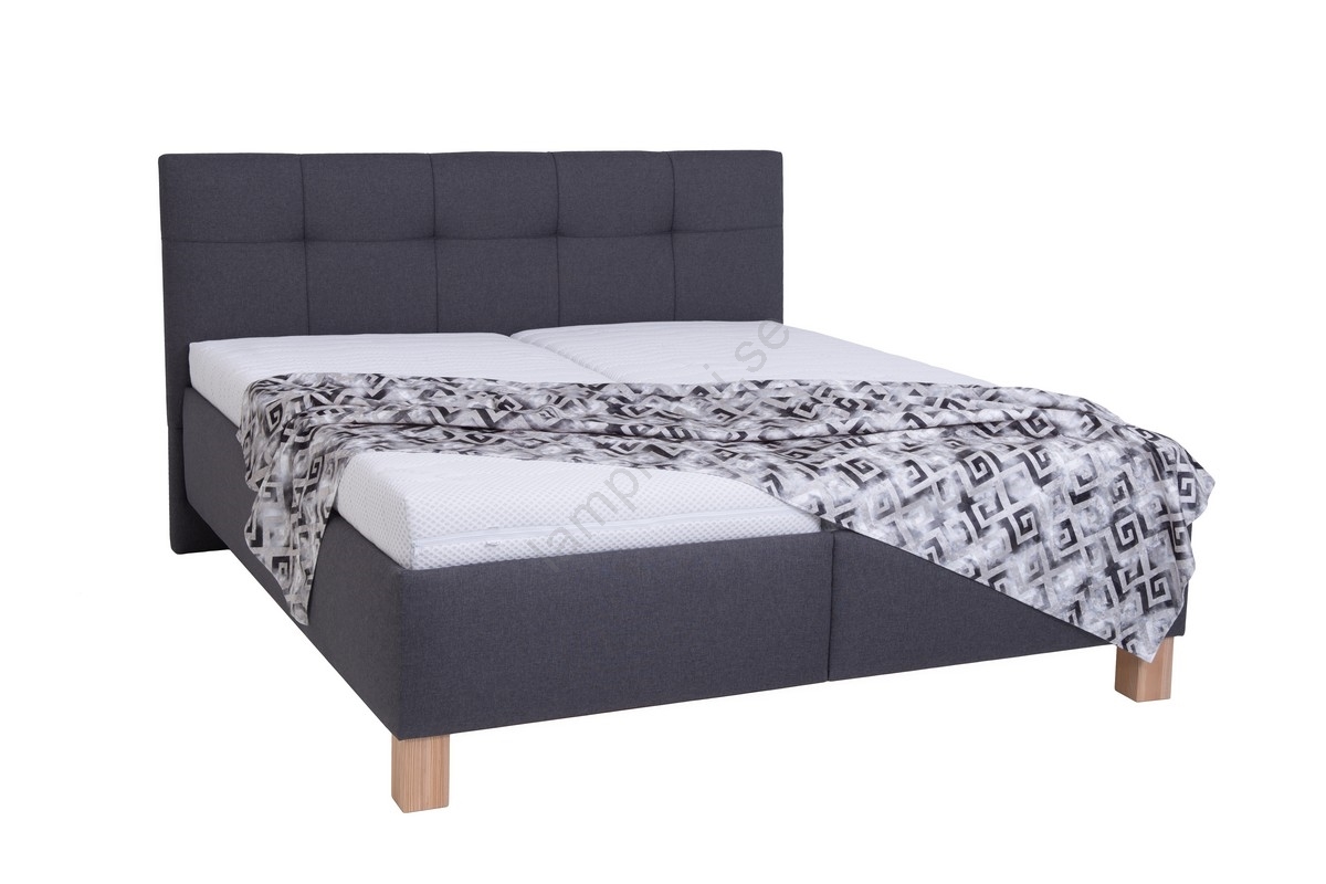 • Tygklädd säng med madrass och förvaring MARIA 180x200 cm, grå