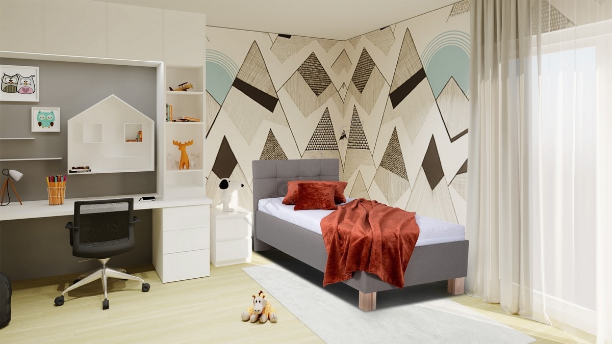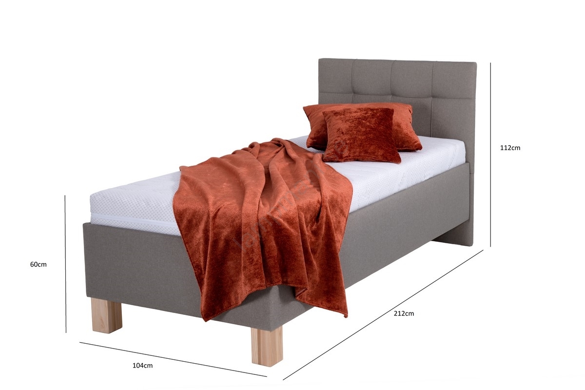 • MARIA ONE — tygklädd säng med förvaring, 90x200 cm, utan madrass, grå
