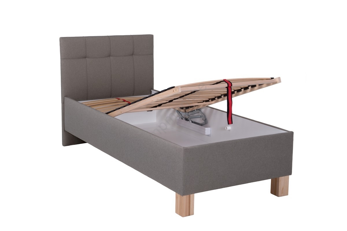 • Tygklädd säng med kvalitetsmadrass och rymlig förvaring MARIA ONE 90x200 cm, brun