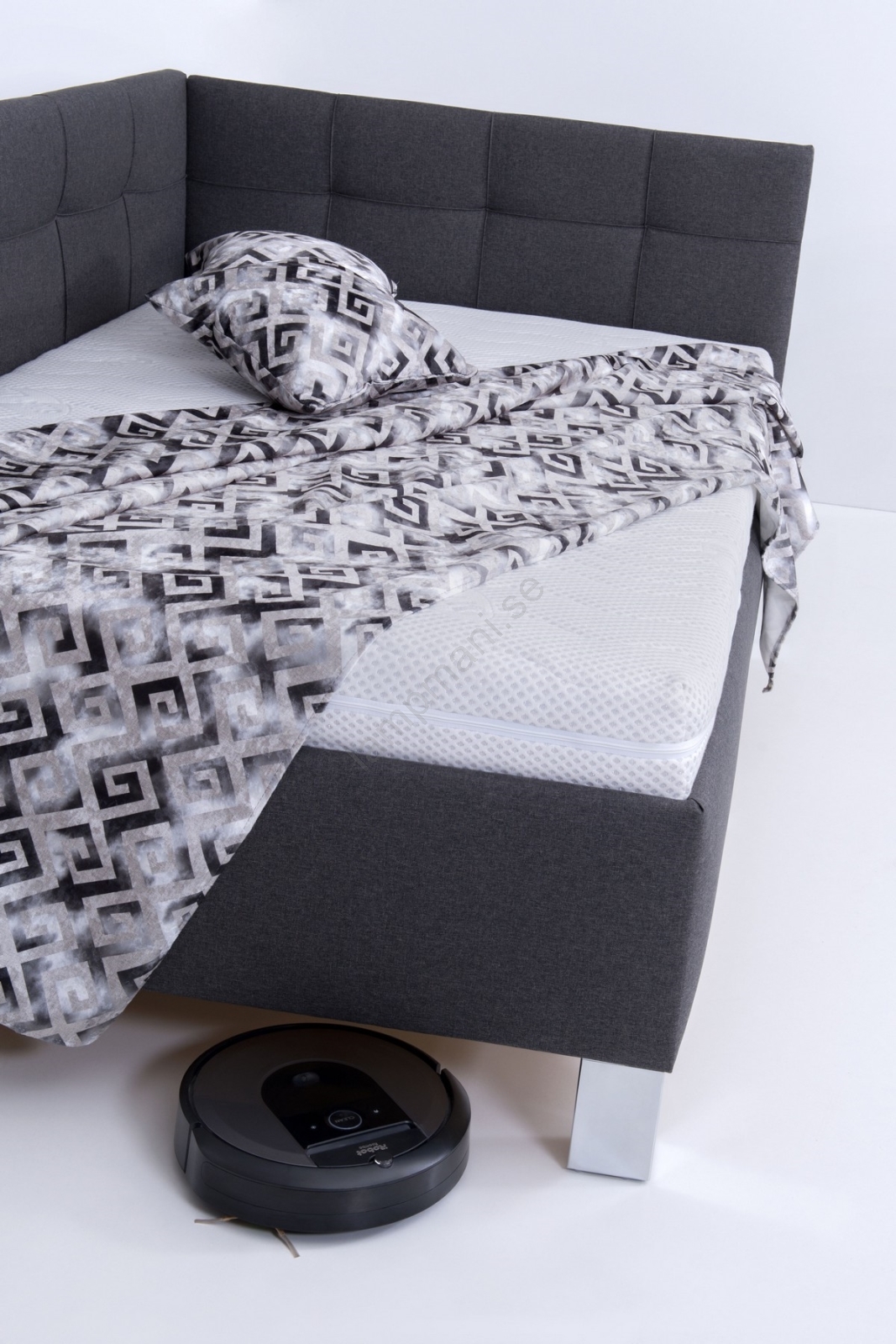 • Stabila och stilfullt utformade ben i krom, 15 cm höga, förstärker inte bara sängens moderna utseende utan möjliggör även enkel städning utan problem även med hjälp av robotdammsugare.