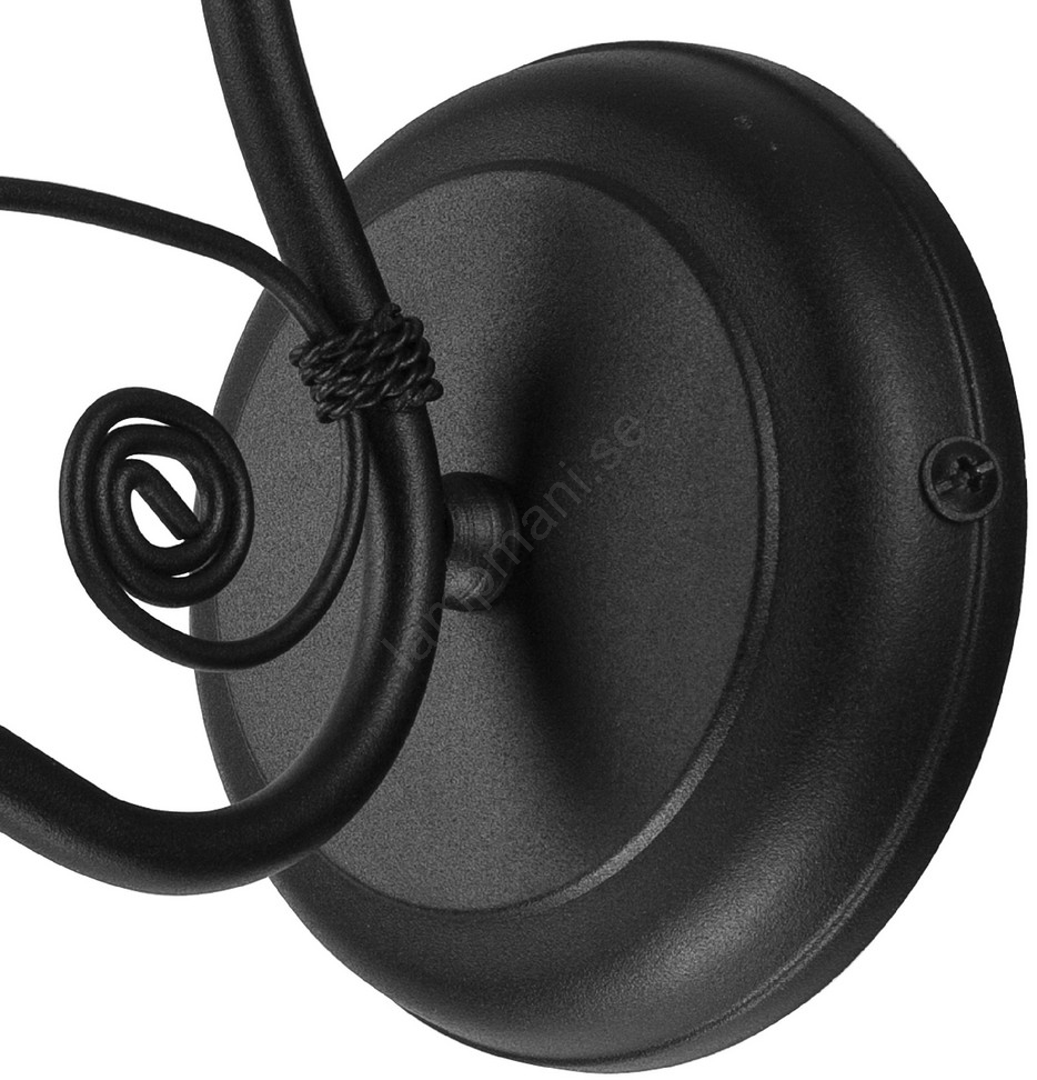 • Vägglampa tillverkad av stål med pulverlackering och yta i matt svart struktur, monterad på en list direkt på väggen.