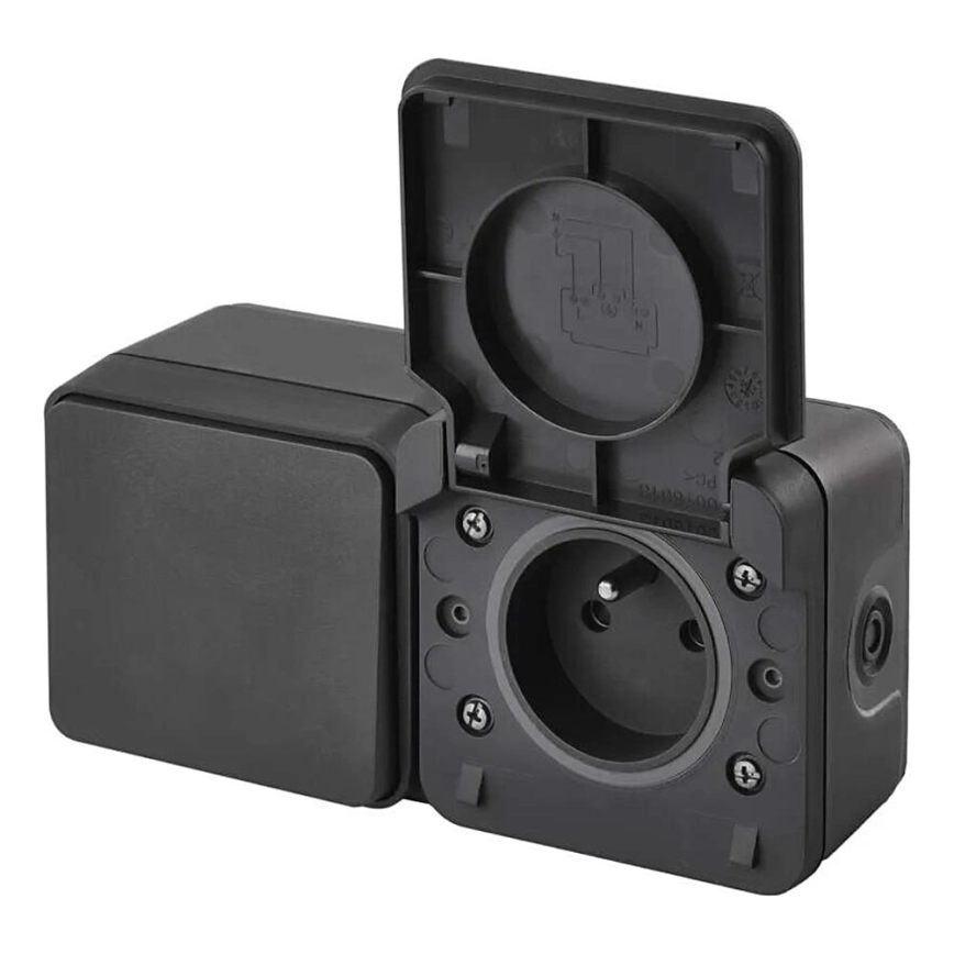 Väggbrytare för kontakt alternerande med uttag 250V/16A IP55