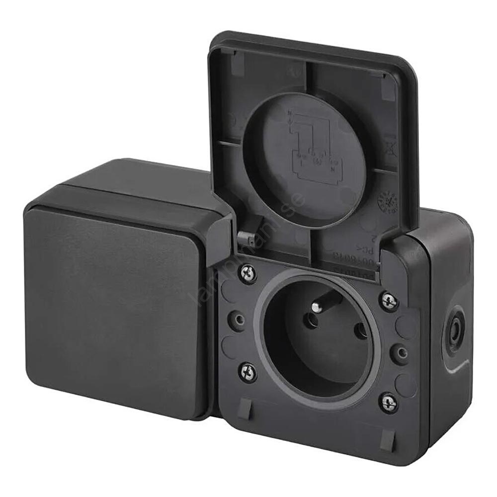 Väggbrytare för kontakt alternerande med uttag 250V/16A IP55 | Lampmani