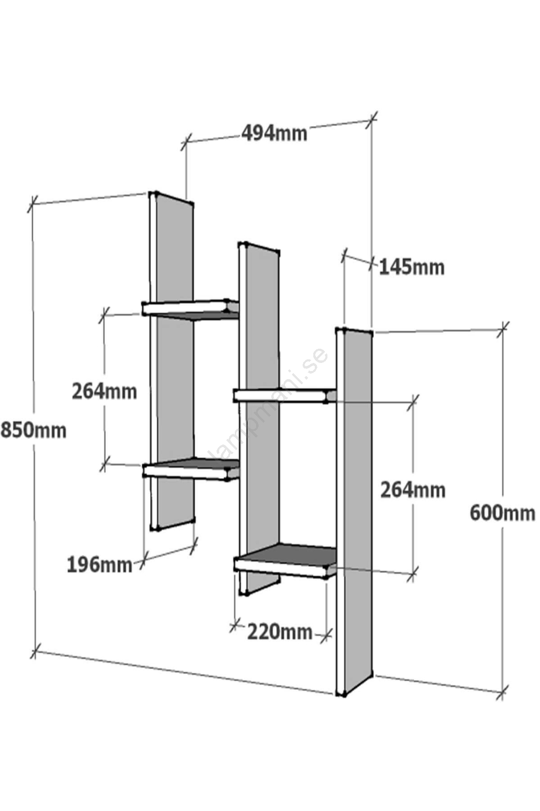 • Höjd på hyllorna: 26,4 cm.