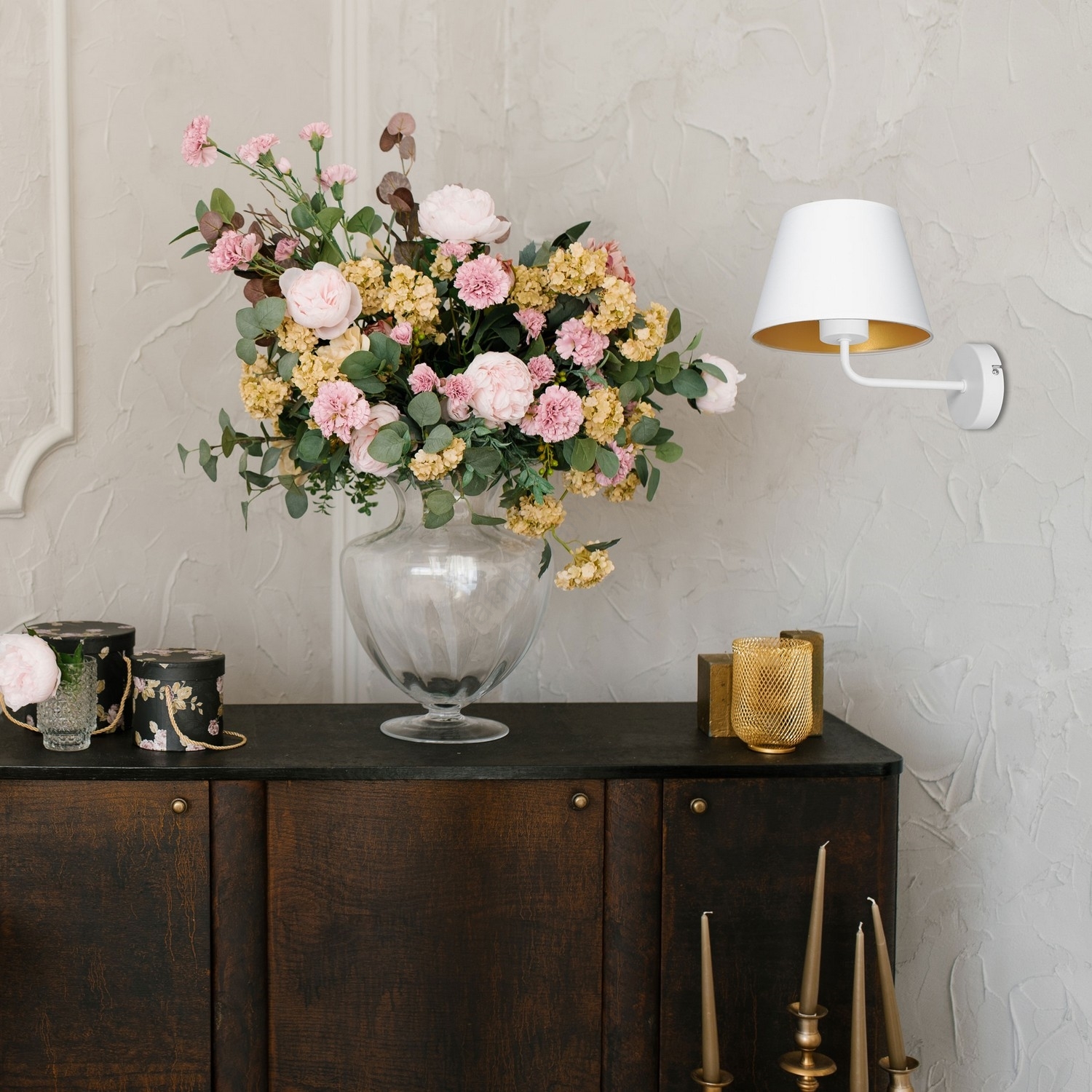 Vägglampa ARDEN 1xE27/60W/230V vit/guld
