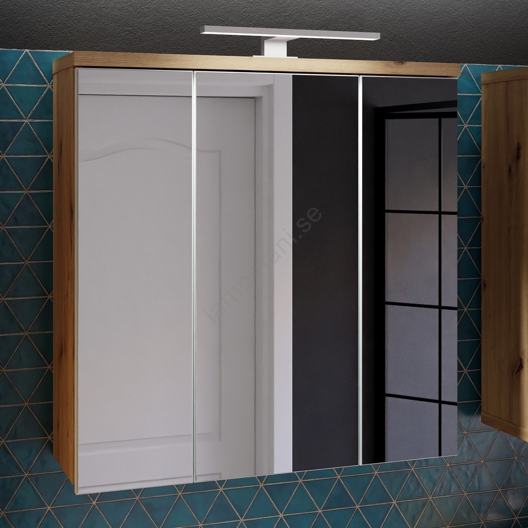 Väggmonterat badrumsskåp med spegel VENOM vit/ek artisan | Lampmani