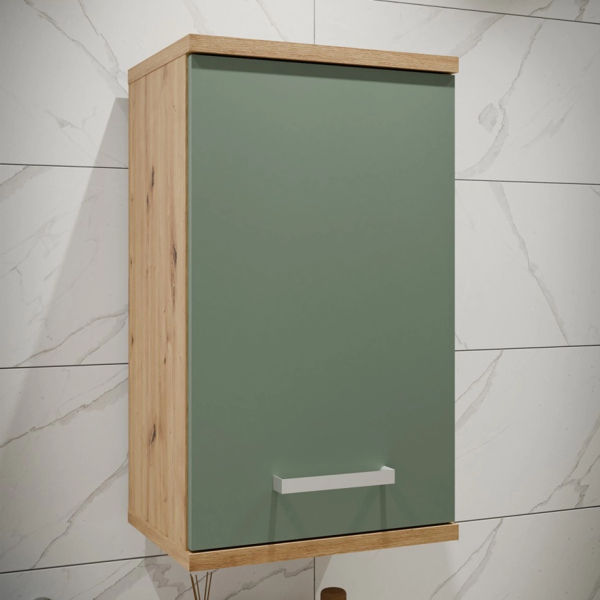 Väggmonterat badrumsskåp VENOM grön/Artisan-ek