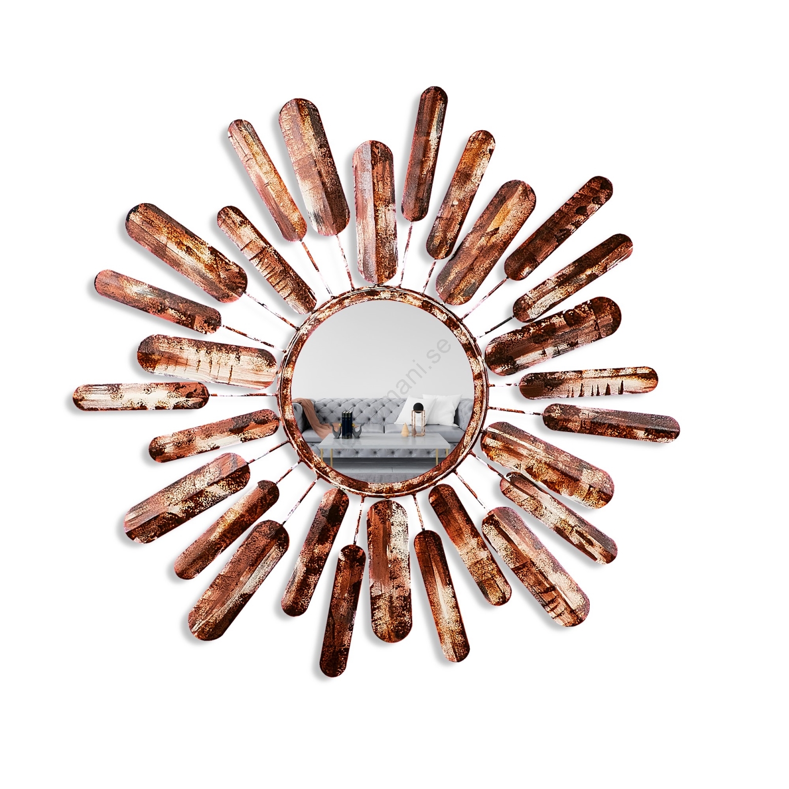 • Väggspegel SOL diameter 75 cm brun