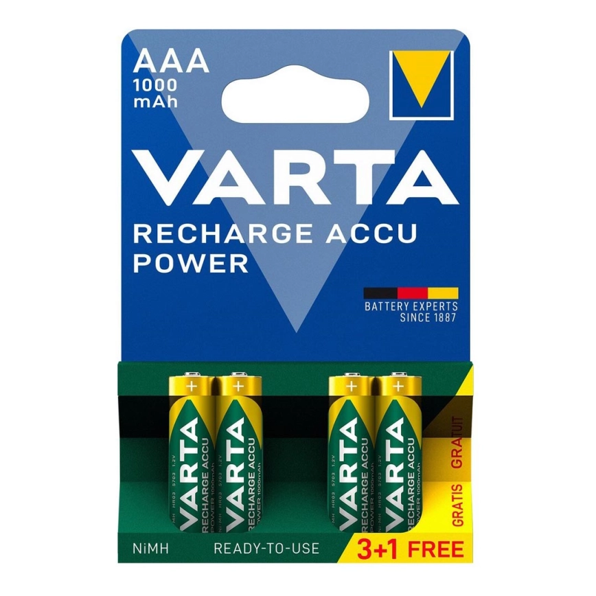 Varta 5703301494 - 3+1 delar Laddningsbart batteri ACCU AAA Ni-MH/1000mAh/1,2V | Lampmani