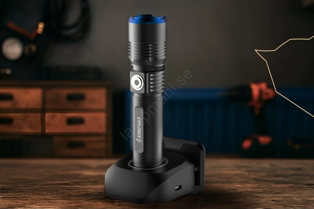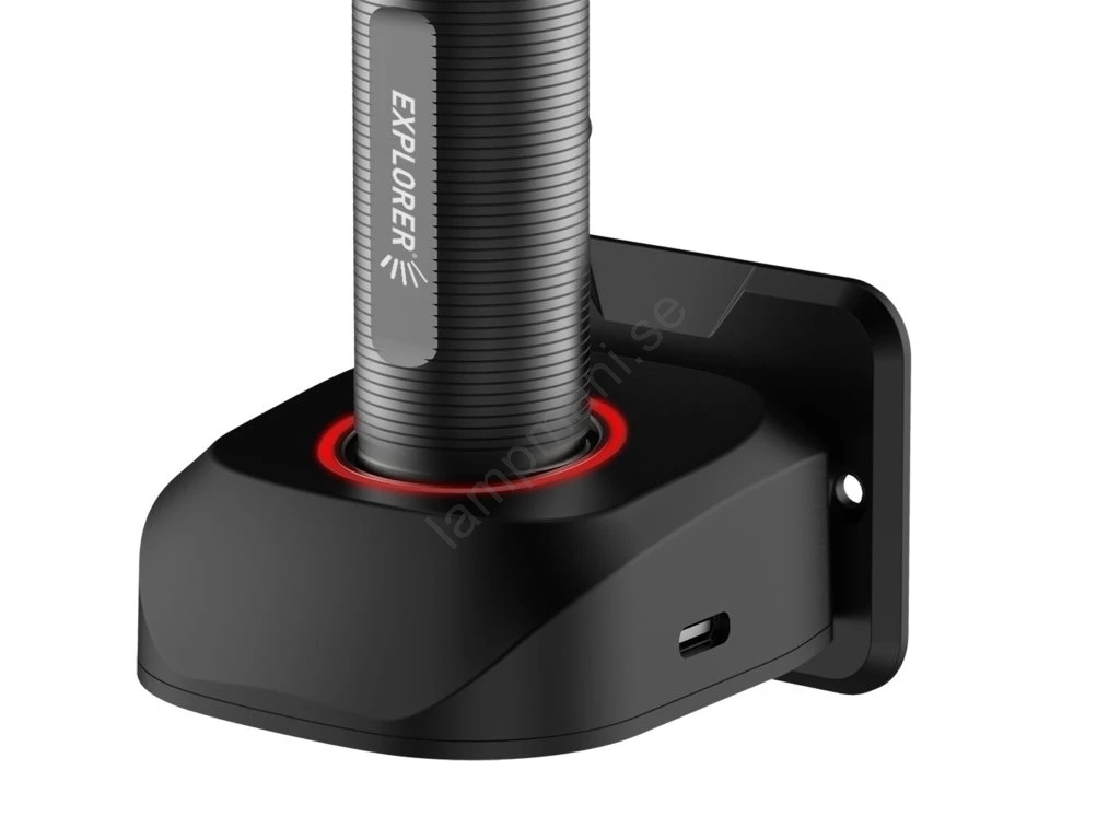 • Laddning via en USB-C-docka som ingår i förpackningen och gör det enkelt att förvara och ladda ficklampan.