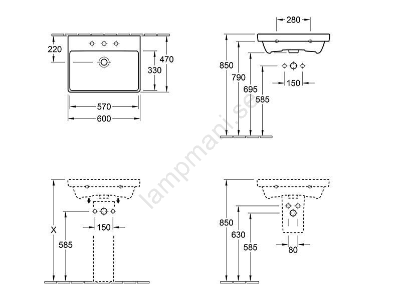 Villeroy & Boch 415860R1 - Vägghängt tvättställ AVENTO 60x47 cm keramik/vit | Lampmani
