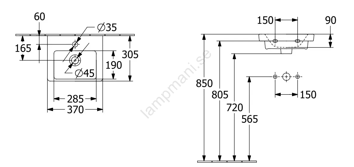 Villeroy & Boch 43703701 - Väggmonterat tvättställ SUBWAY 37x30,5 cm keramik/vit | Lampmani