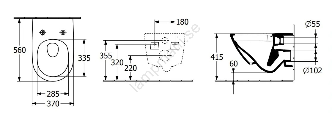 • Cistern, spolningsknapp och sits ingår inte.
