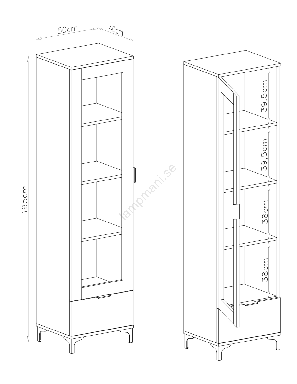 • Möbeln är tillverkad i loftstil och kännetecknas av metallben och handtag som ger en extra industriell karaktär.