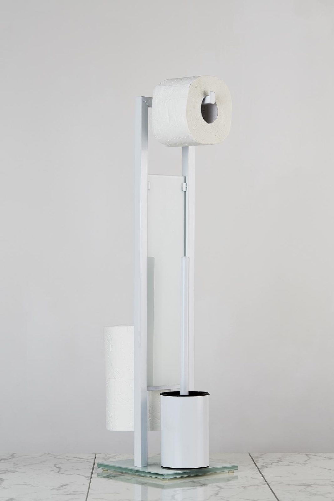 • Praktisk 3-i-1-kombination – hållare för toalettborste, toalettrullhållare och behållare för reservrullar.