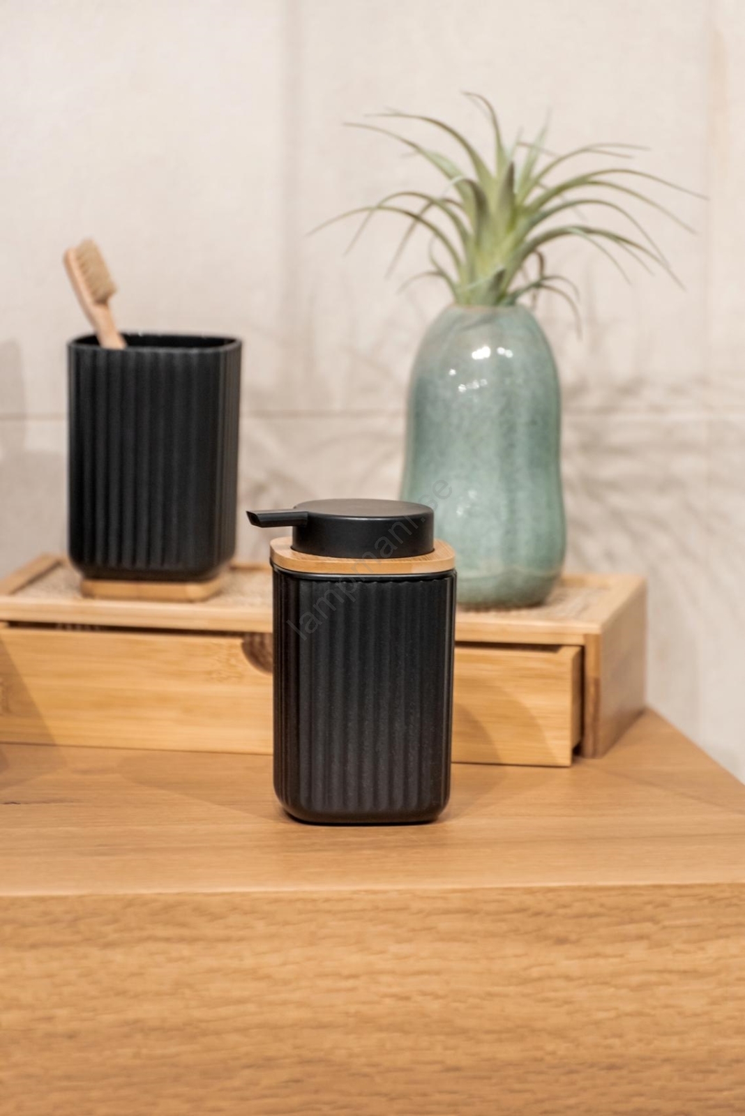 WENKO 25298100 - Tvåldispenser ROTELLO 8,9x12,7 cm svart/brun | Lampmani