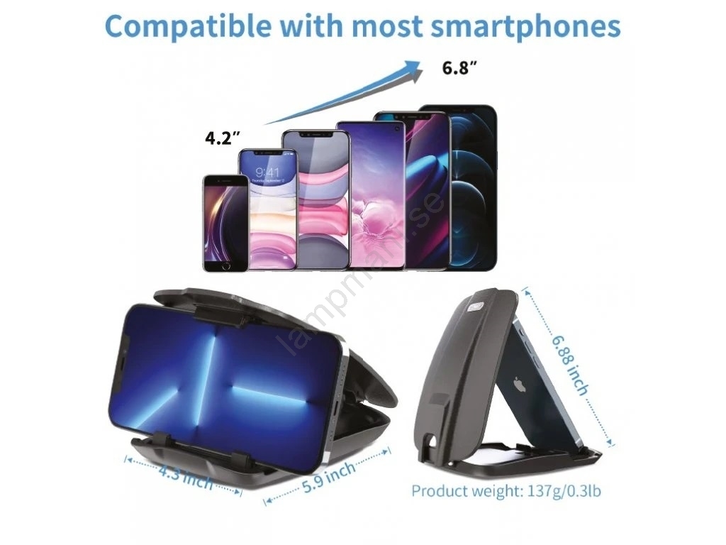 • Telefonen har ingen chans att falla ur hållaren, tack vare dess halkfria grepp och självlåsande mekanism.