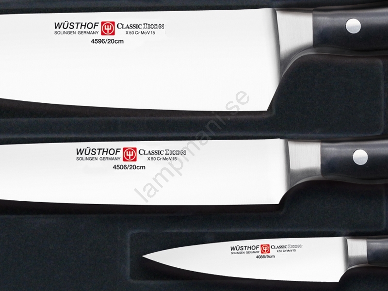 • Setet innehåller: kockkniv 20 cm, skinkkniv 20 cm, grönsakskniv 9 cm.
