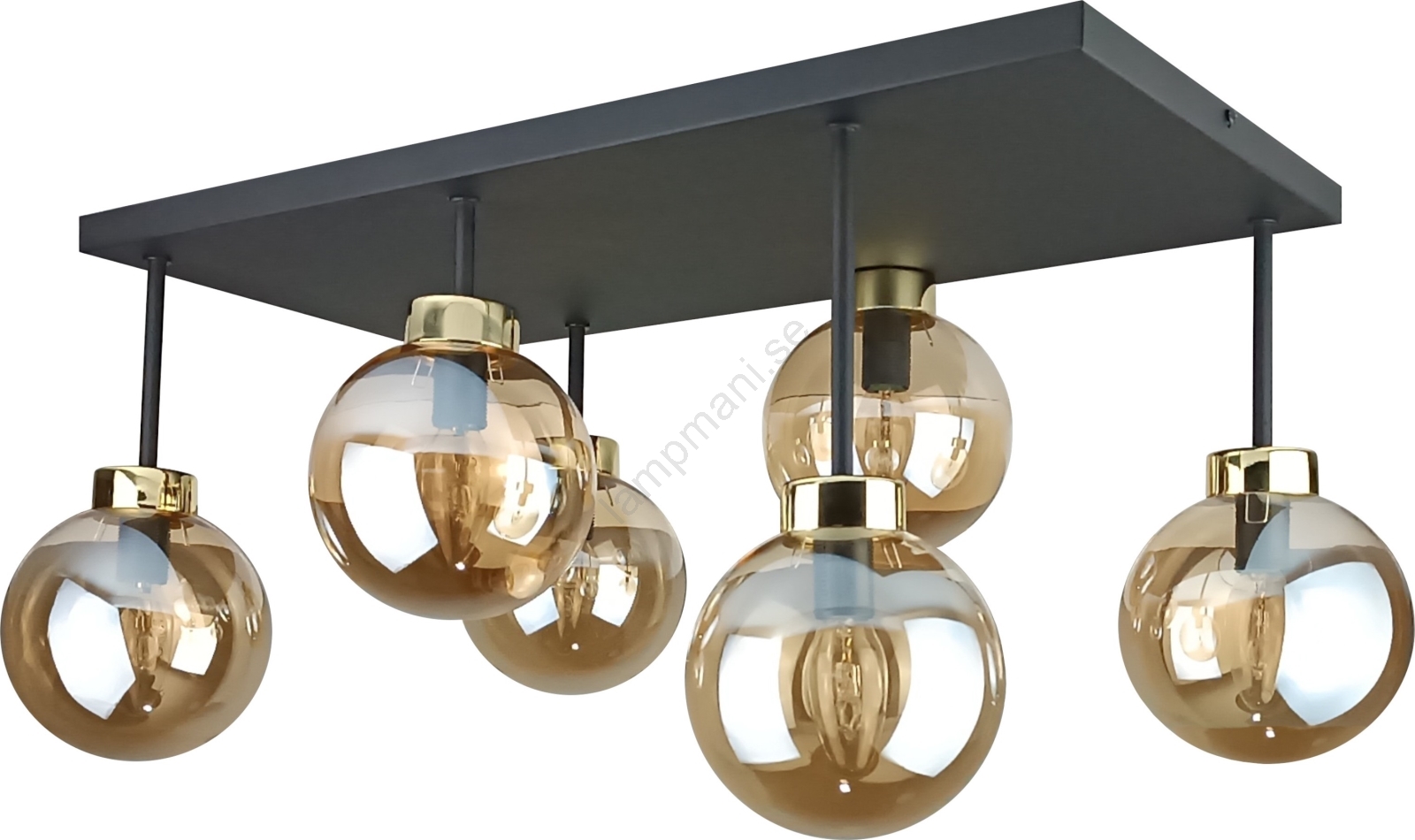 • Ytmonterad ljuskrona DEA 6xE14/60W/230V svart/guld/rökig svart