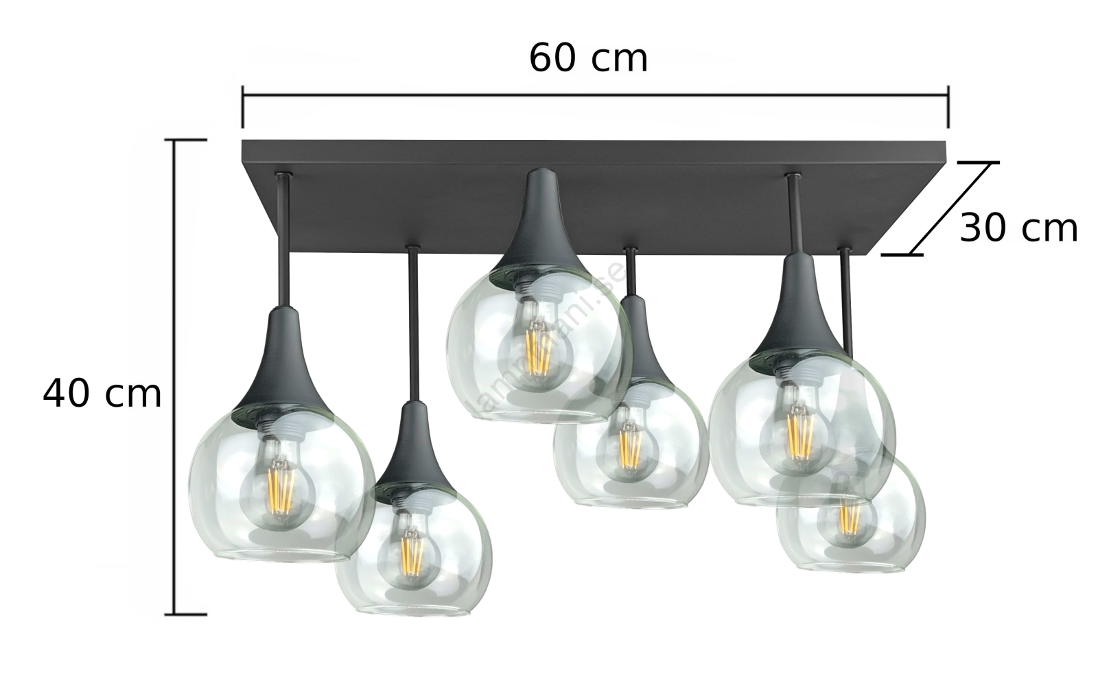 Ytmonterad ljuskrona SOMA 6xE27/60W/230V svart/genomskinlig | Lampmani